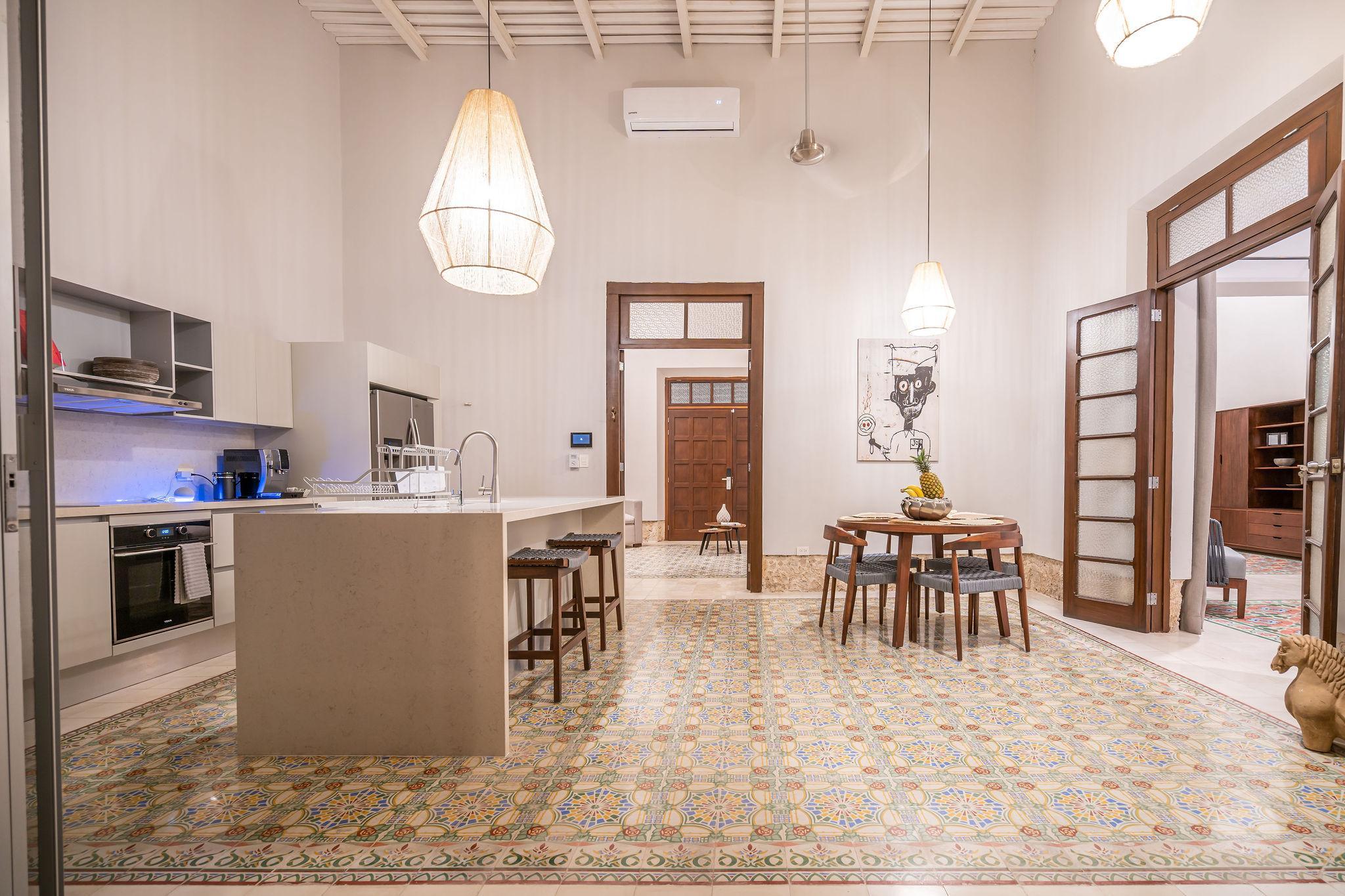 Relájese en esta impresionante casa colonial en el corazón del vibrante centro de la ciudad de Mérida. The Horseshoe Mérida, con sus pisos de baldosas originales y sus altos techos con vigas altas, ha sido recientemente renovado para darle una sensación lujosamente moderna y encantadora. Sumérjase en la bañera independiente y luego duerma en un dormitorio celestial con su cama con dosel. Después de un día explorando, refrésquese en la piscina turquesa, duerma en la hamaca en el exuberante jardín o, mientras se pone el sol, suba la escalera de caracol a la terraza de la azotea con una copa de vino.